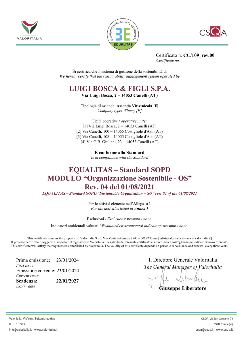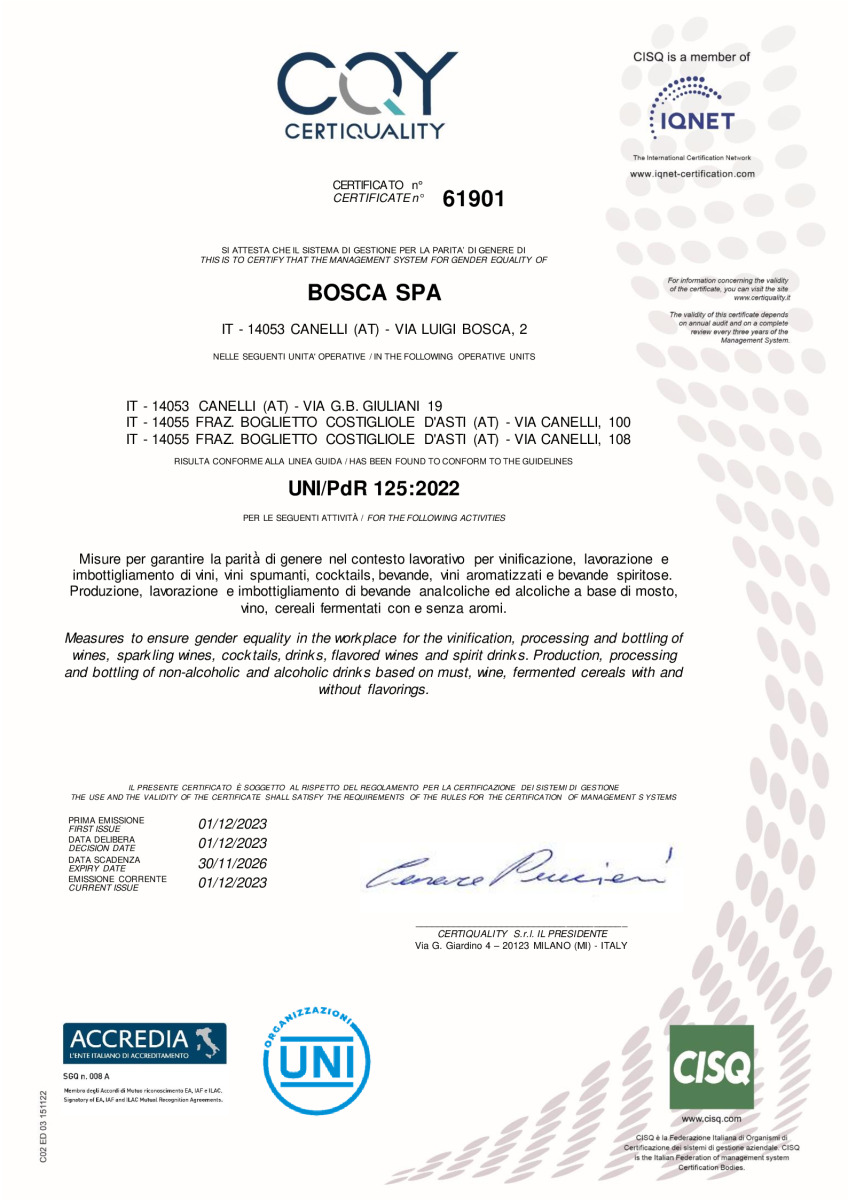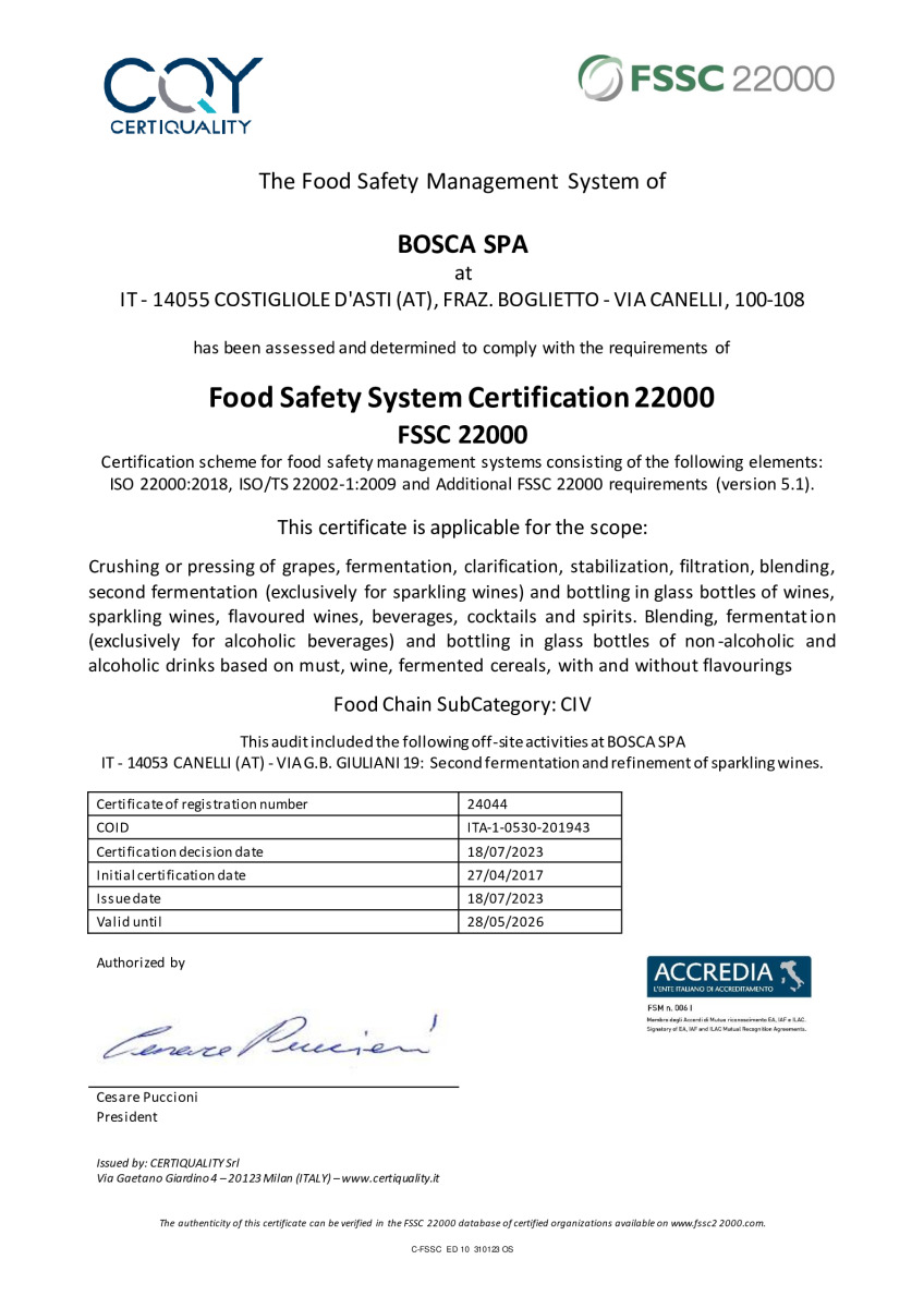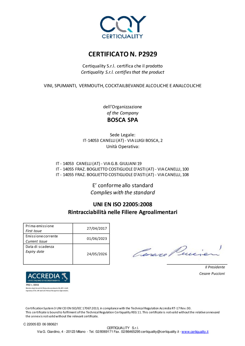 Dichiaro di aver letto, compreso e di accettare l'informativa privacy policy e le condizioni di vendita di Bosca S.p.a.